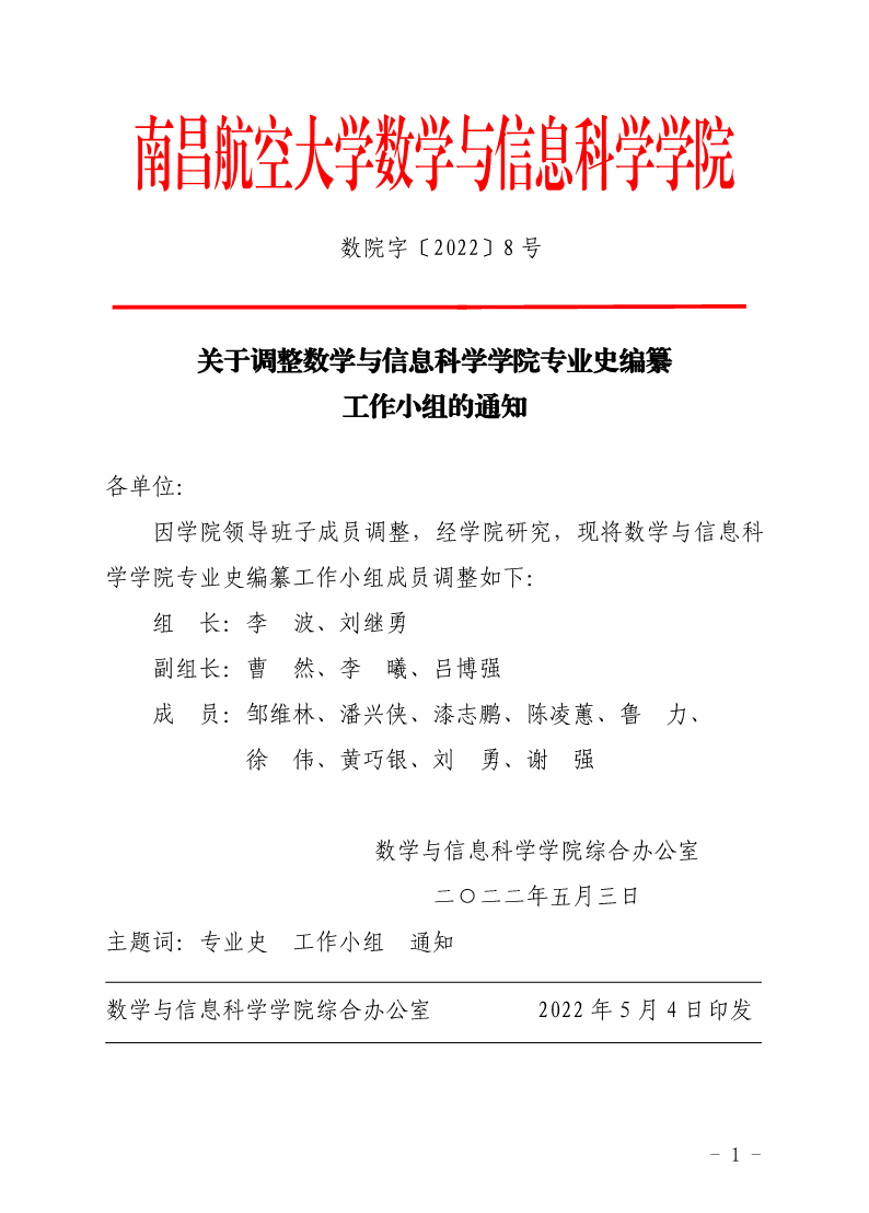 关于调整澳彩论坛 专业史编纂工作小组的通知