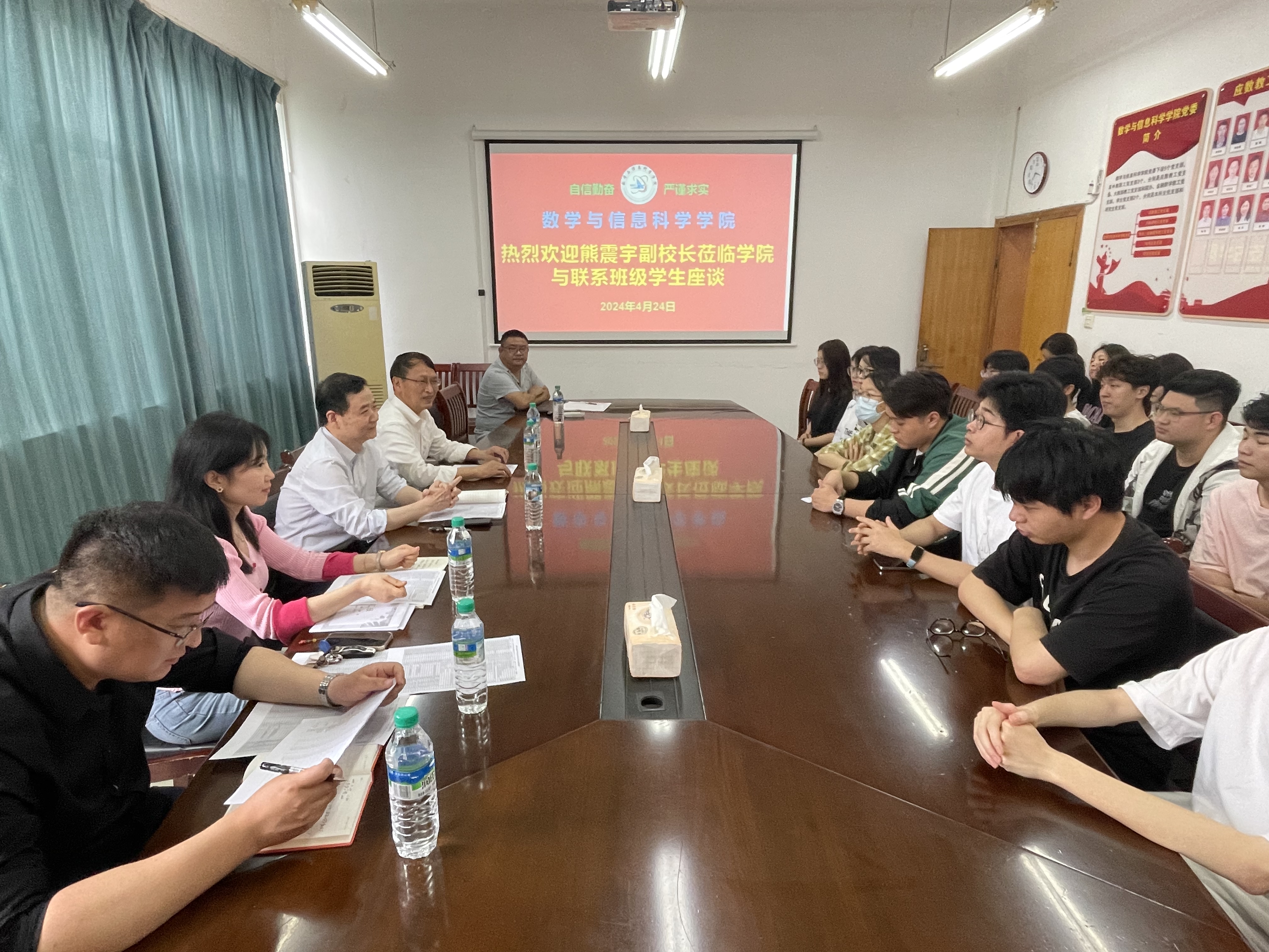4月24日下午,副校长熊震宇来到澳彩论坛 ,看望慰问所联系的200731班学生,并与该班级学生座谈,调研毕业生就业工作。澳彩论坛 党委书记刘继勇、党委副书记兼副院长曹然、招生就业处就业科负责人、学院毕业班辅导员、班主任参加。